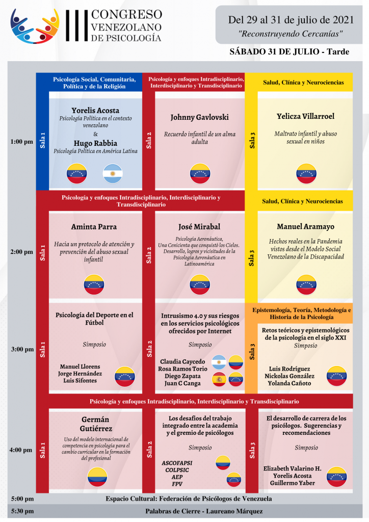 Programación del último día de congreso: sábado, 31 de julio de 2021.